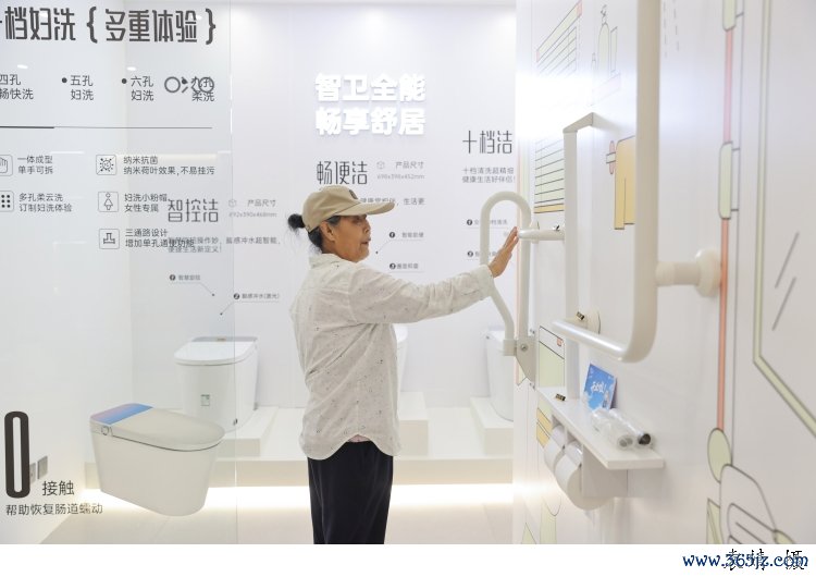 图为工作人员正在向前来咨询体验的老人介绍适合适老化改造的设施,以及适用于老年人使用的各类扶手及家具电器。/文汇报记者袁婧摄