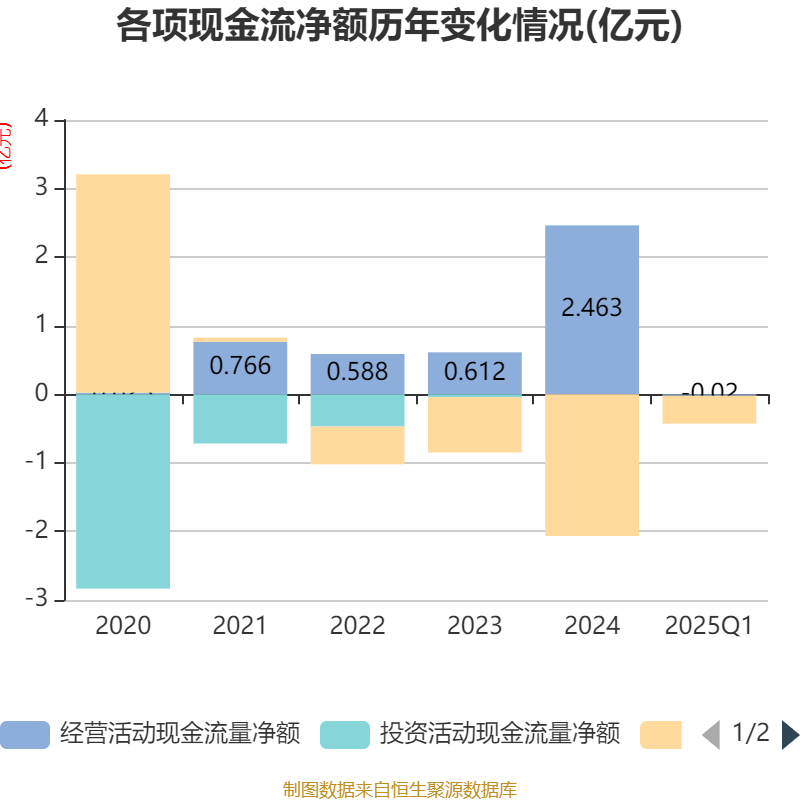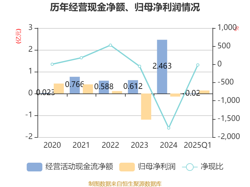 截至2025年一季度末,公司经营活动现金流净额为-202.94万元,同比增加1965.26万元;筹资活动现金流净额-4067.43万元,同比减少7412.48万元;投资活动现金流净额-13.69万元股利网,上年同期为-26.25万元。