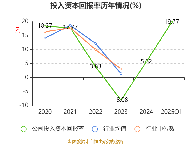 盈利能力方面, 2025年一季度公司加权平均净资产收益率为18.68%,同比上升75.36个百分点。公司2025年第一季度投入资本回报率为19.77%,较上年同期上升19.79个百分点。