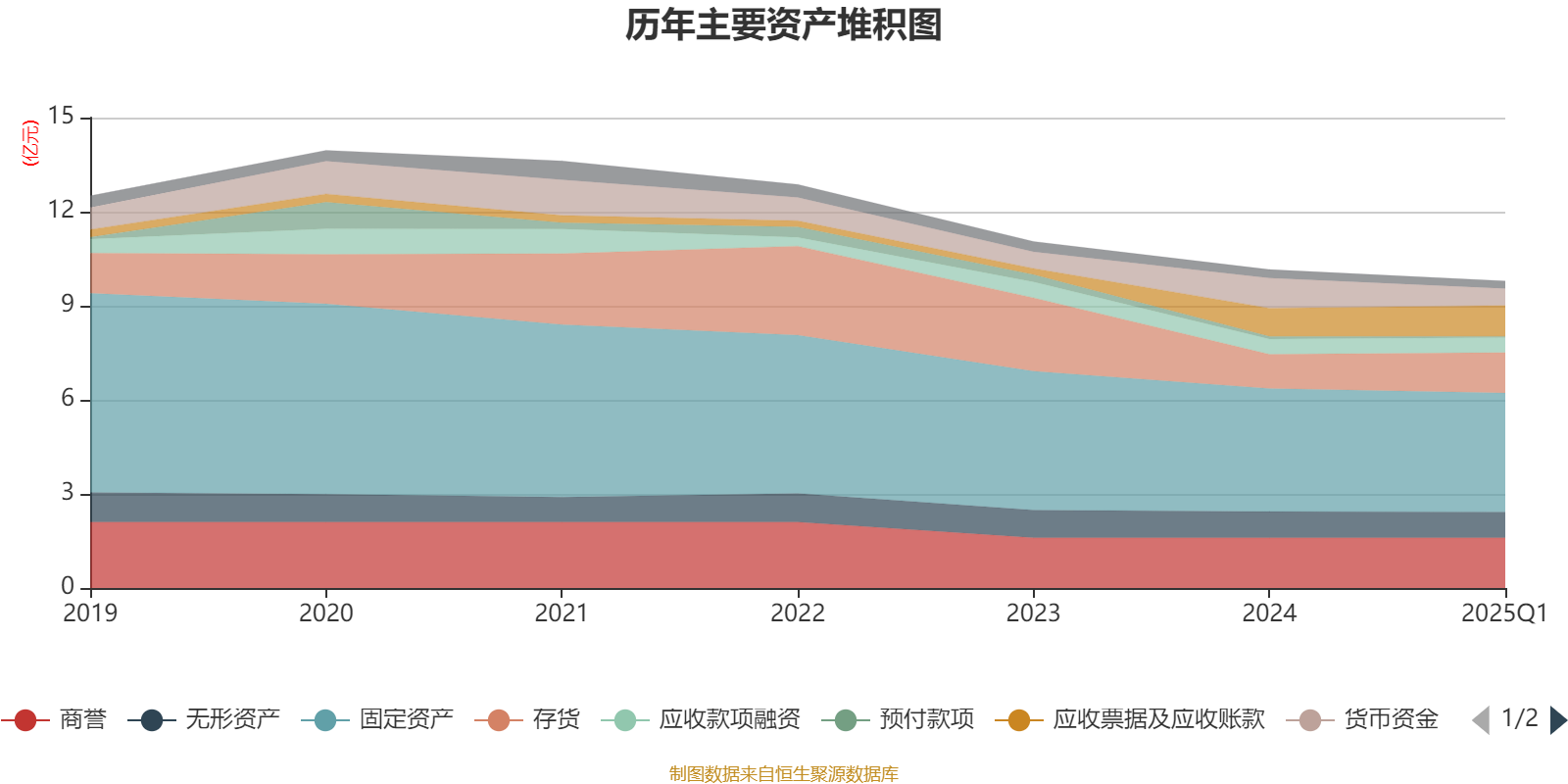 资产重大变化方面,截至2025年一季度末,公司货币资金较上年末减少44.18%,占公司总资产比重下降3.96个百分点;存货较上年末增加18.14%,占公司总资产比重上升2.43个百分点;应收票据及应收账款较上年末增加9.4%,占公司总资产比重上升1.2个百分点;商誉较上年末没有变化,占公司总资产比重上升0.59个百分点。