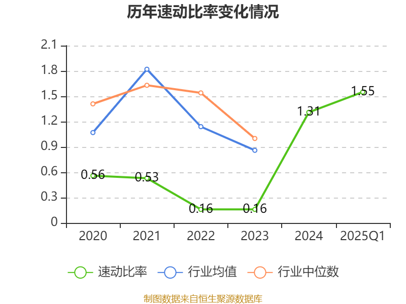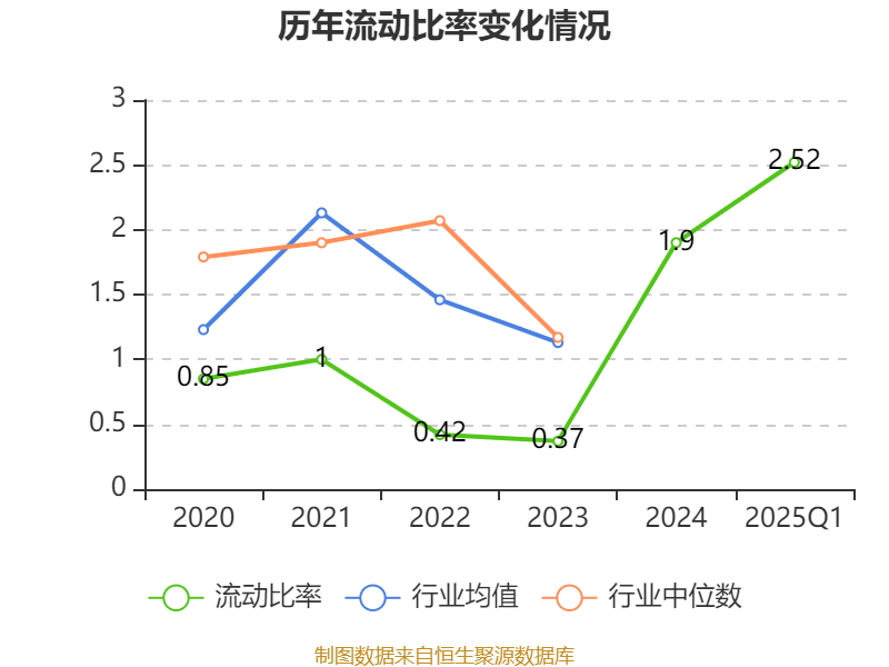 2025年第一季度,公司流动比率为2.52,速动比率为1.55。