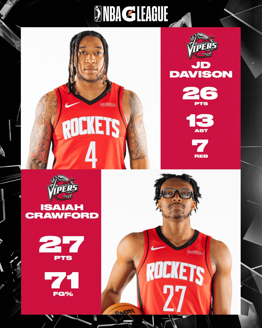 另外两名双向合同球员以赛亚-克劳福德与凯文-哈里斯分别砍下27分和22分。