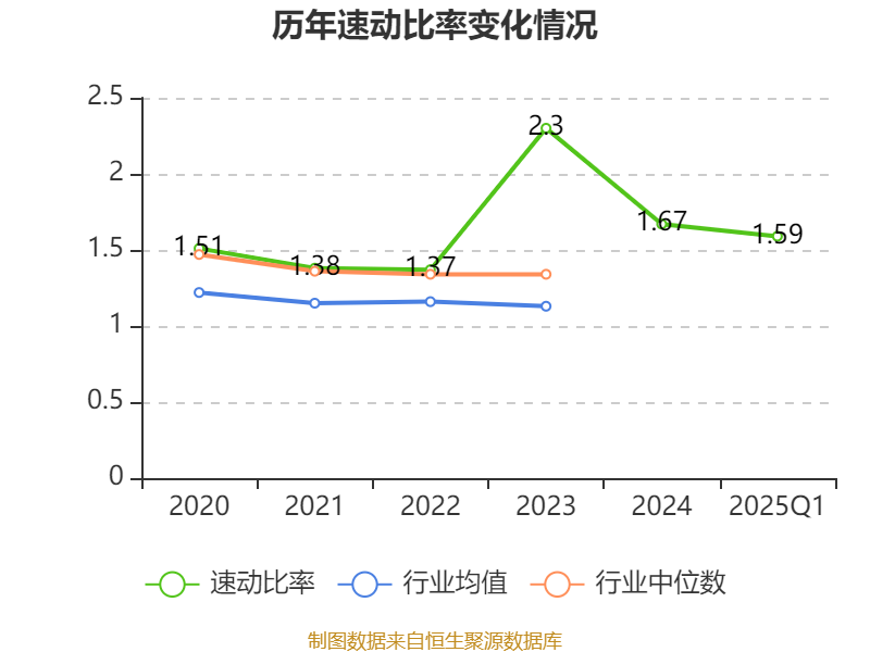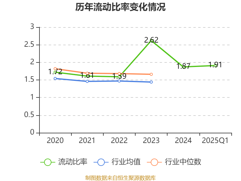 2025年第一季度,公司流动比率为1.91,速动比率为1.59。