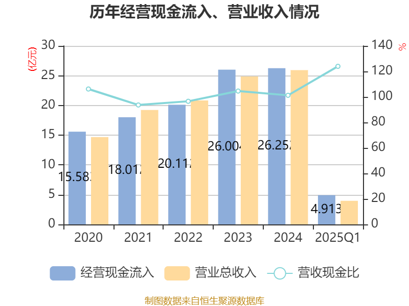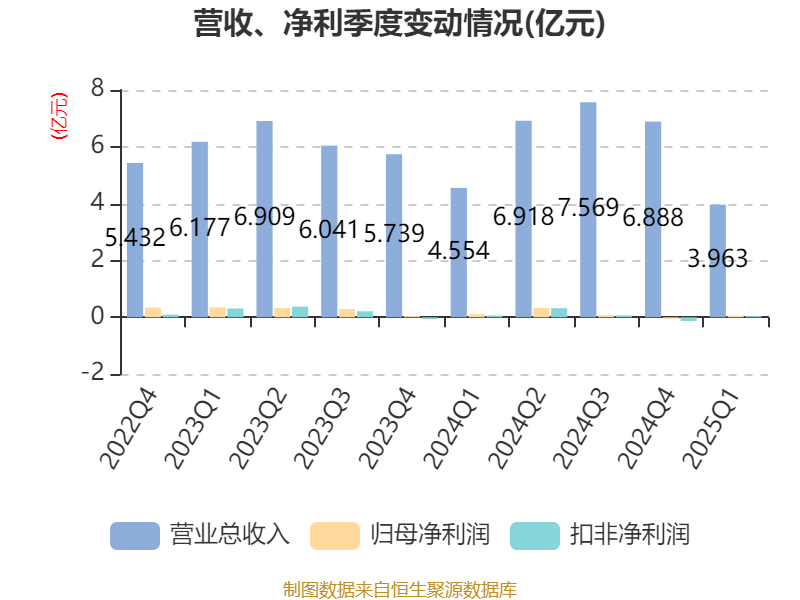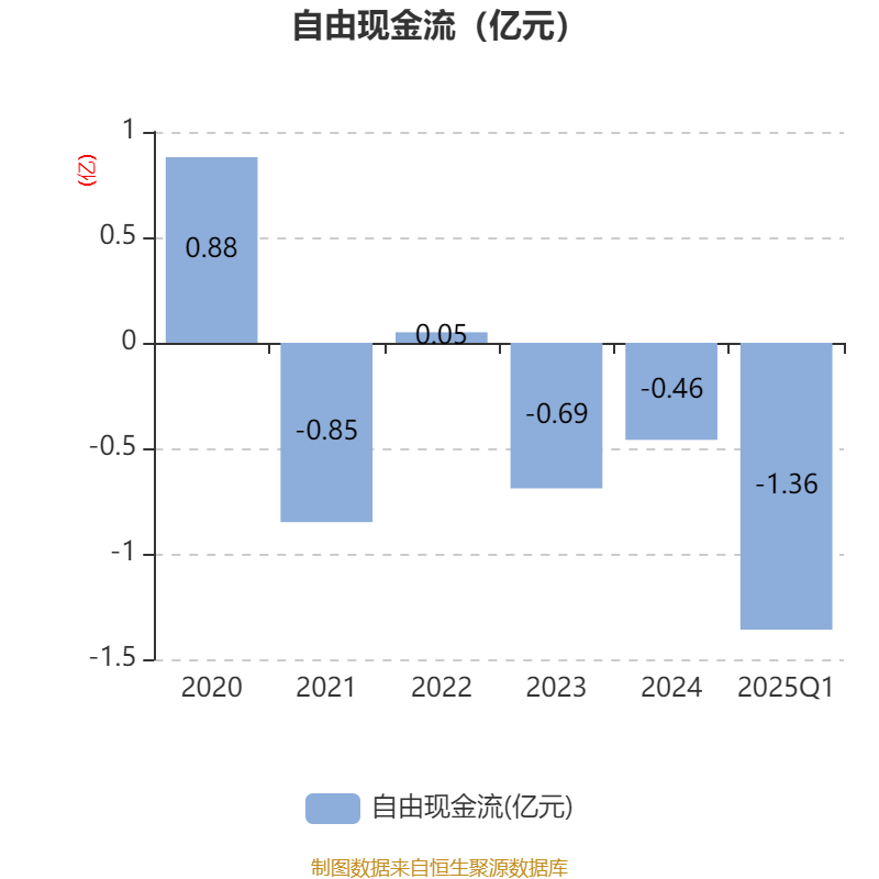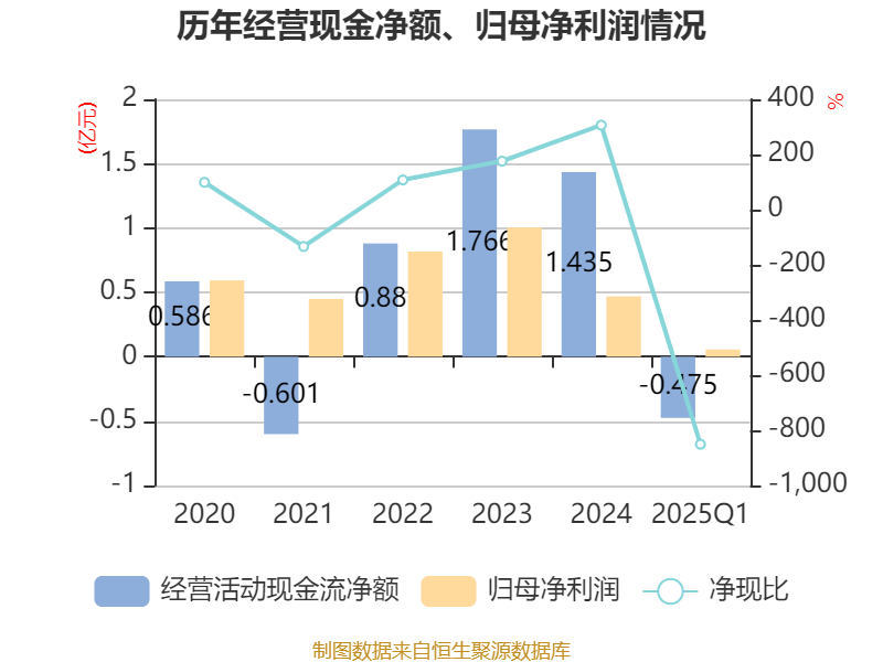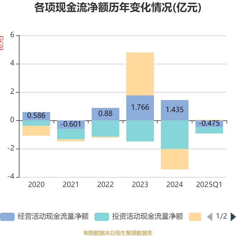 截至2025年一季度末,公司经营活动现金流净额为-4750.32万元,同比增加2516.61万元;筹资活动现金流净额489.35万元,同比减少6187.01万元;投资活动现金流净额-4513.85万元,上年同期为-2.38亿元。
