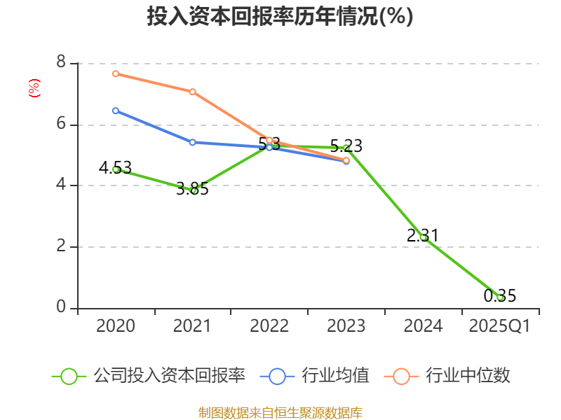 盈利能力方面, 2025年一季度公司加权平均净资产收益率为0.25%,同比下降0.23个百分点。公司2025年第一季度投入资本回报率为0.35%,较上年同期下降0.14个百分点。